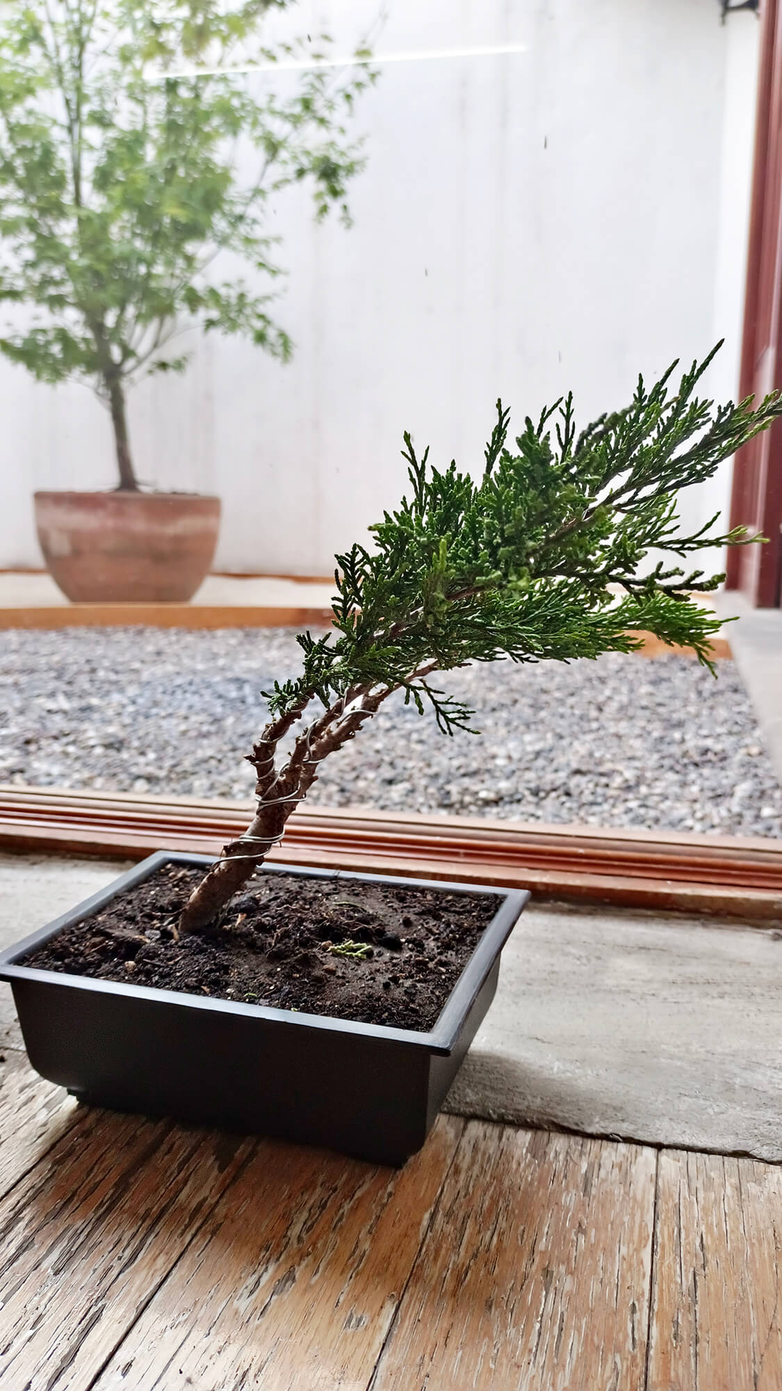 Trabajarás con especies adecuadas para principiantes, como el ficus, el olmo chino (Zelkova) o el pino negro japonés, aprendiendo las técnicas de poda, alambrado y trasplante propias de cada variedad.