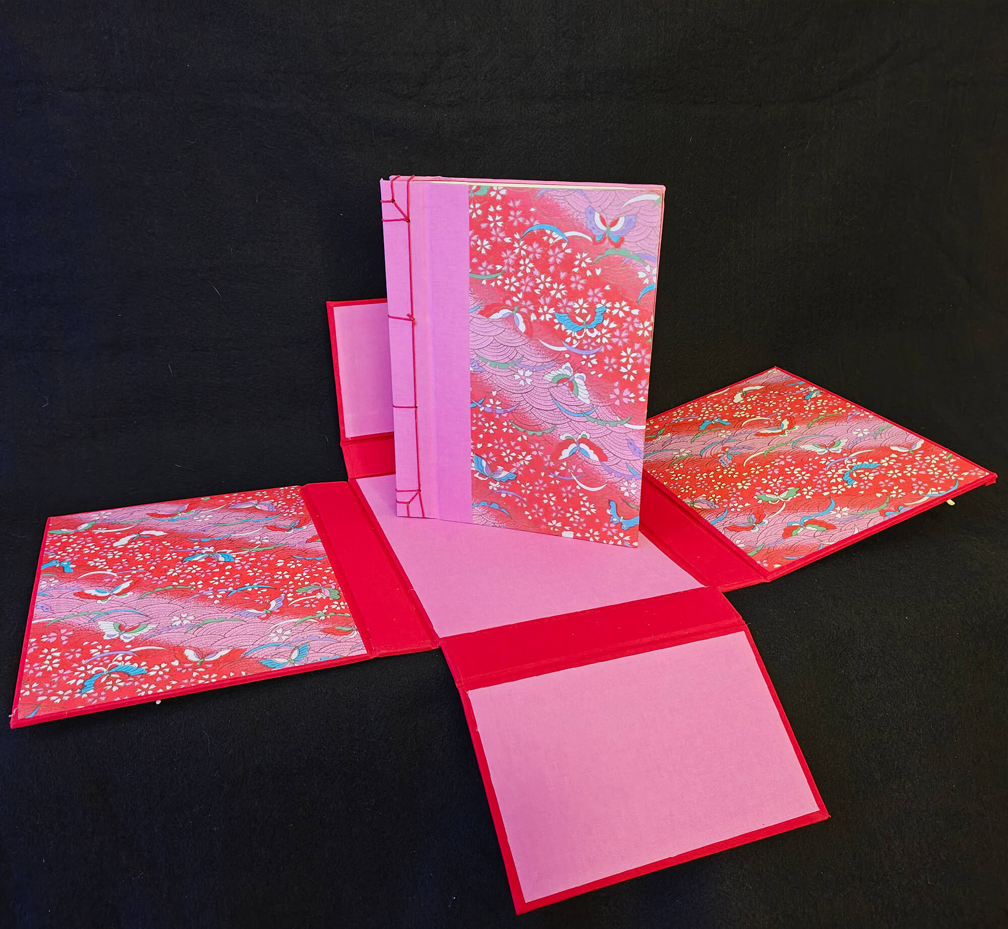 La encuadernación japonesa es un método de encuadernación artesanal milenaria, reconocido por su elegancia y simplicidad. Se realiza manualmente cosiendo las hojas con un hilo visible a lo largo del lomo, creando patrones decorativos que a la vez refuerzan la estructura del libro. A diferencia de otras técnicas, no emplea pegamento ni requiere maquinaria compleja, sino únicamente herramientas manuales básicas como punzón, aguja e hilo. Es ideal para crear cuadernos personalizados, proyectos artísticos o ediciones especiales, y permite abrir las páginas por completo sin dañar el encuadernado.